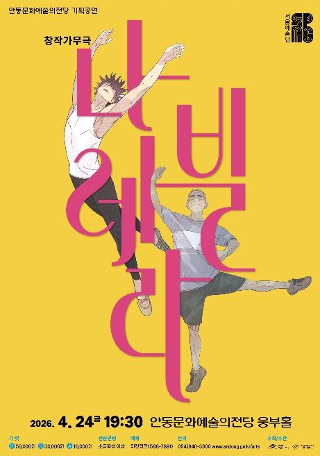 안동문화예술의전당은 시민들에게 수준 높은 문화 향유 기회를 제공하고 지역 간 문화 격차를 해소하기 위해, 서울예술단의 대표 레퍼토리인 창작가무극 ‘나빌레라’를 오는 4월 24일 오후 7시 30분 웅부홀 무대에 올린다고 밝혔다.
